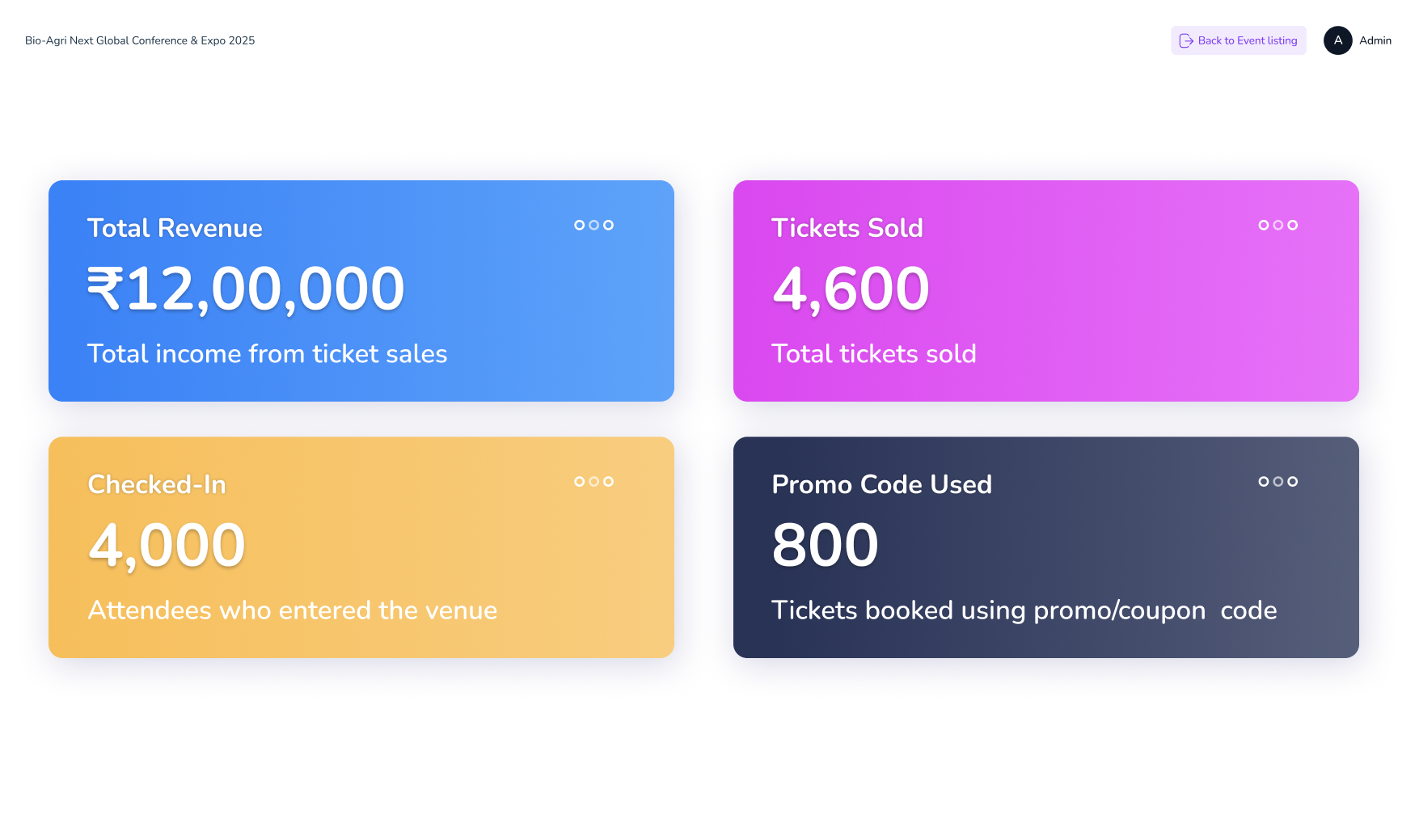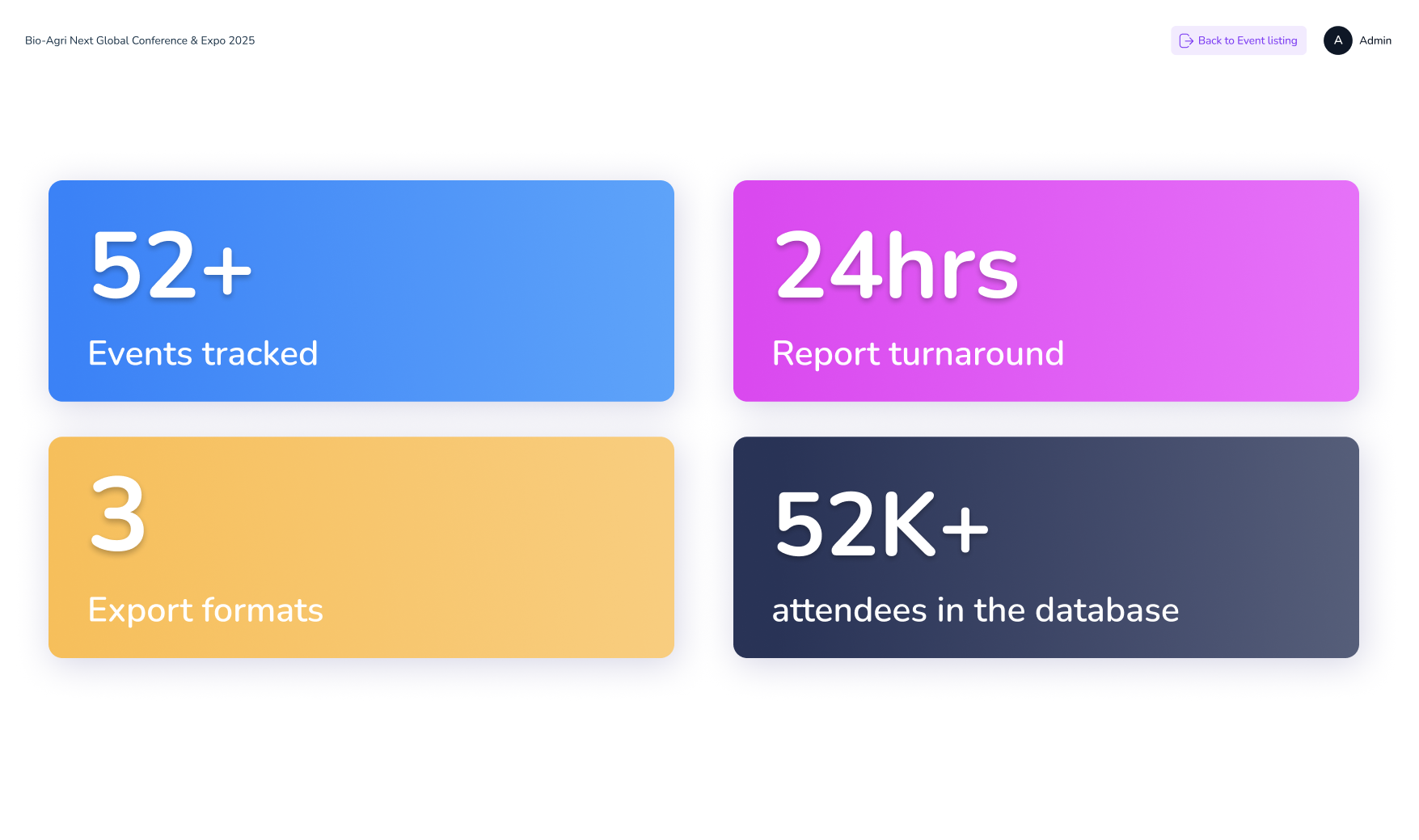 Every sponsor and exhibitor gets their own analytics package. How many people visited their stall, how many leads they captured, when the traffic peaked, and how many came back for a second look. Real numbers from the event floor. The kind of data that turns a one-time sponsor into a returning one.