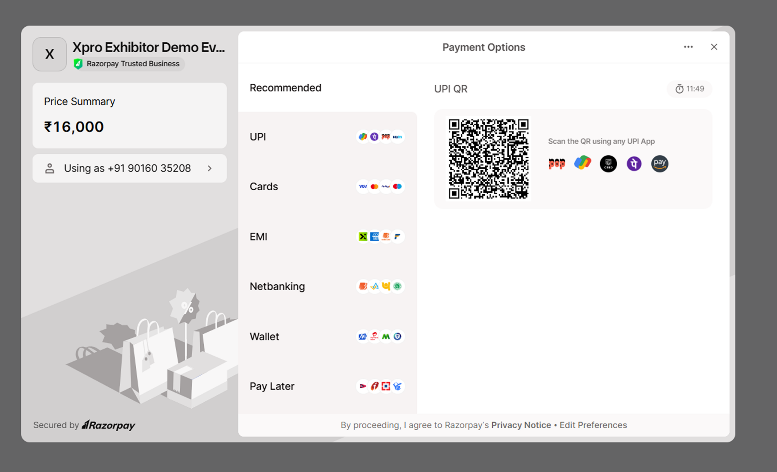 Support for all popular Indian and international payment methods. Attendees choose what works for them.